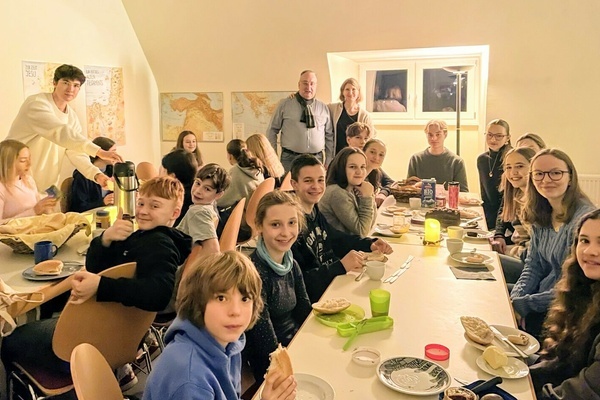 Im Advent fanden wieder unsere Frühschichten im Reli-Raum statt und erfreuten sich großer Beliebtheit. Immer freitags um 7 Uhr versammelten sich ca. 50 Schülerinnen und Schüler aus allen Jahrgangsstufen, um gemeinsam in den Tag und in den Advent zu starten. Ein geistlicher Impuls und traditionelle Lieder begleiteten jede Woche die erwartungsvolle Vorbereitungszeit – es weihnachtet(e) sehr! Tatkräftige Unterstützung erhielt das Religionsteam von Frau Winkler und Frau Freund, die für die musikalische Begleitung sorgten. Beim gemeinsamen Frühstück im Anschluss gab es einen regen Austausch, echte Gemeinschaft, schöne Gespräche und leckere Brötchen, die in diesem Jahr wieder vom Förderverein GYM übernommen wurden.