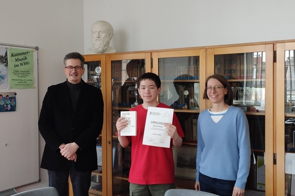 Die erste Runde des diesjährigen Mathewettbewerbs ist gelaufen und die schulinternen Sieger stehen fest. Rafael Schröder aus der Klassenstufe 7 erreichte einen dritten Platz. Die Zehntklässlerin Frida Köhler erhielt einen ersten Preis und qualifizierte sich damit für die Teilnahme der zweiten Runde des Wettbewerbs. An der ersten Runde des 38. Landeswettbewerbs hatten in Baden-Württemberg insgesamt 433 Jugendliche teilgenommen.