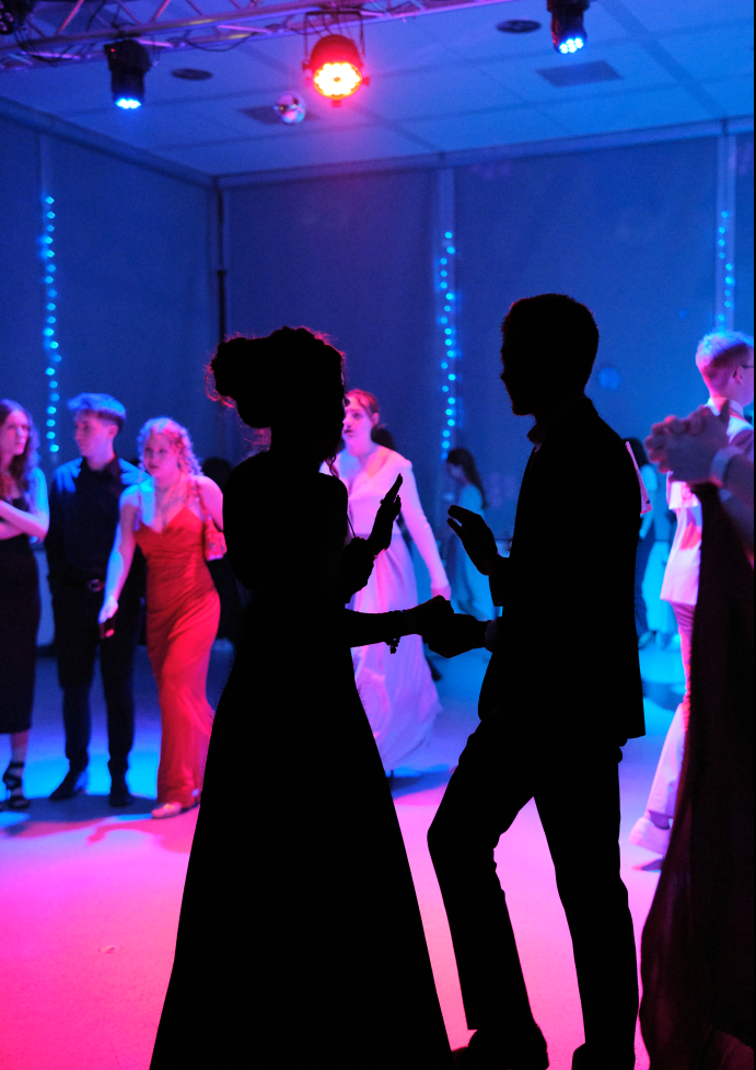 Sehr eindrucksvoll war der Eröffnungstanz von Herrn Dr. Sauer und Frau Bühlmaier. Mit viel Spaß wurden Standardtänze wie Cha-Cha-Cha, Discofox, Jive und Co zu bekannten KünstlerInnen — wie Adele, Michael Jackson, Taylor Swift und noch vielen mehr — getanzt. Natürlich durften die Flash Mobs Cotton-Eye-Joe, Macarena und Fantasy Girl auch nicht fehlen. Für tolle Stimmung sorgten außerdem der Lush Life Trend, der von fast allen mitgetanzt wurde, und der Tanzwettbewerb, dessen Sieger Finn und Tabea mit der Startnummer 8 groß gefeiert wurden. An dieser Stelle aber noch einmal großen Respekt an alle, die an diesem Wettbewerb teilgenommen haben, denn auch das ist immer ein wichtiger und spannender Bestandteil des Abends. Später sorgten auch zwei Hip-Hop Gruppen sowie die Formationstänzer Julius und Sophia von Emis Dance Academy für viel Freude. Während ihrer Tänze wurde stets mitgeklatscht und einzelne SchülerInnen erwähnten uns gegenüber, dass diese Vorführungen ein besseres Verständnis der jeweiligen Sportart herstellen. Gerade das ist beim Formationstanz sehr beeindruckend und interessant. Die meisten SchülerInnen hatten schon durch verschiedene Tanzkurse Erfahrung beim Standard-Tanzen, deshalb war die Tanzfläche durchgehend gut gefüllt.